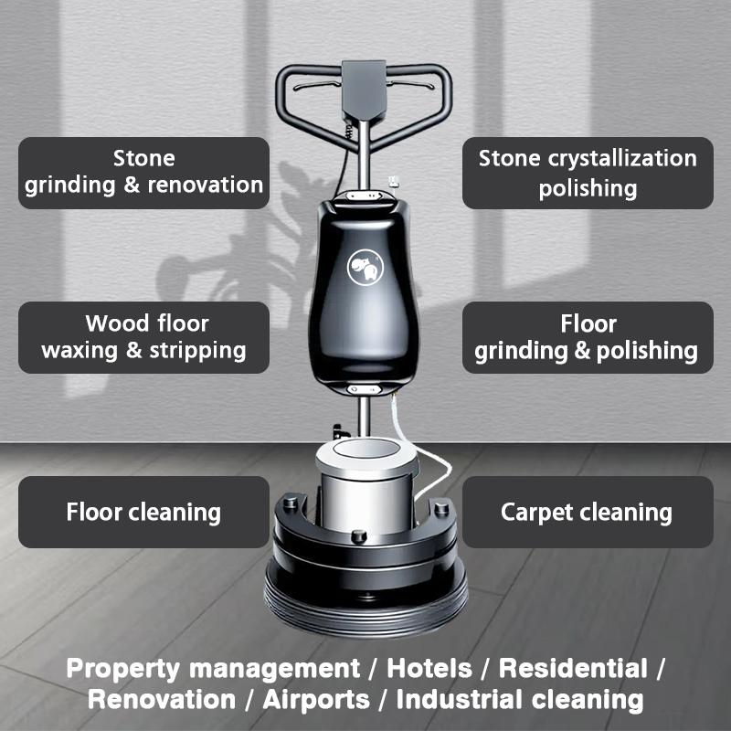 Designed for professional floor cleaning and maintenance. Widely used in hotels, property management, residential areas, airports, renovation projects, and industrial cleaning. Suitable for tiles, PVC floors, epoxy flooring, marble, stone, and polished concrete.